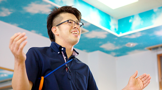 リハビリセンターアトムで働き始めて18年になります。働き始めたきっかけはたまたま見た新聞折り込みの求人広告。その広告を見たときに「ここで働きたい!」と思って、気がついたら電話をしていました。介護の現場なんて経験がなかったのに、自分でも不思議ですね。