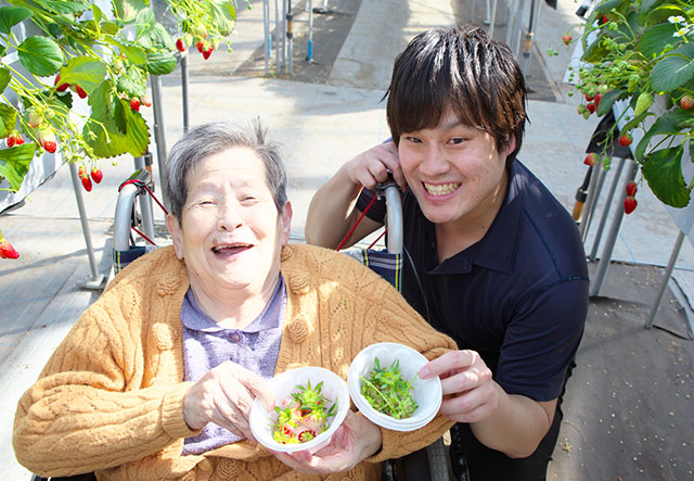 私も含めて、7割以上の職員が初心者からのスタートです。人と人の温かい関わりあいの中でできる介護という仕事、ぜひ私たちと一緒に新しいチャレンジをしてほしいです。
