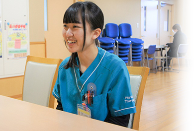 リハビリ職には若さがあり活気にあふれています。その中で自分を鼓舞していけるのも、全体の人の良さがあってだと思います。また、利用者様・患者様からもたくさんの元気がもらえ一日一日をよりよく過ごすとてもいい環境です。